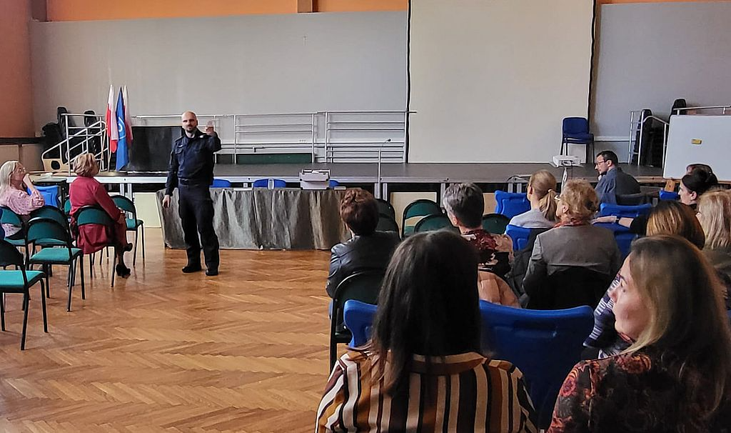 Policjant spotkał się z gronem pedagogicznym Zespołu Szkół nr 2 im. ks. prof. Józefa Tischnera, aby porozmawiać o zagrożeniach związanych z uzależnieniami młodych ludzi. W przypadkach wystąpienia problemu istotna jest szybka i właściwa diagnoza… Spotkanie to poświęcone zostałotakże prawnej odpowiedzialności młodzieży.