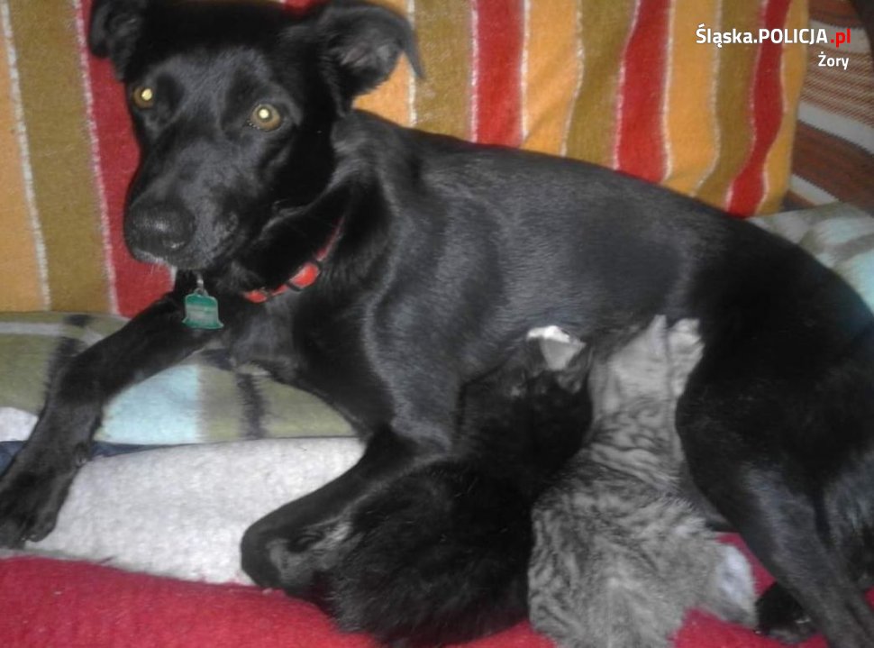Mł. asp. Paweł Banak jest również szczęśliwym właścicielem kundelka Mamby, która trafiła do jego domu, gdy była szczenięciem. Podobnie jak kociąt, które ratuje policjant, nikt jej nie chciał, bo nie miała ogona. Los jednak sprawił, że ich drogi także się spotkały i teraz mieszkają razem. Mamba pomaga też cierpliwie policyjnej rodzinie w opiece nad kociętami.