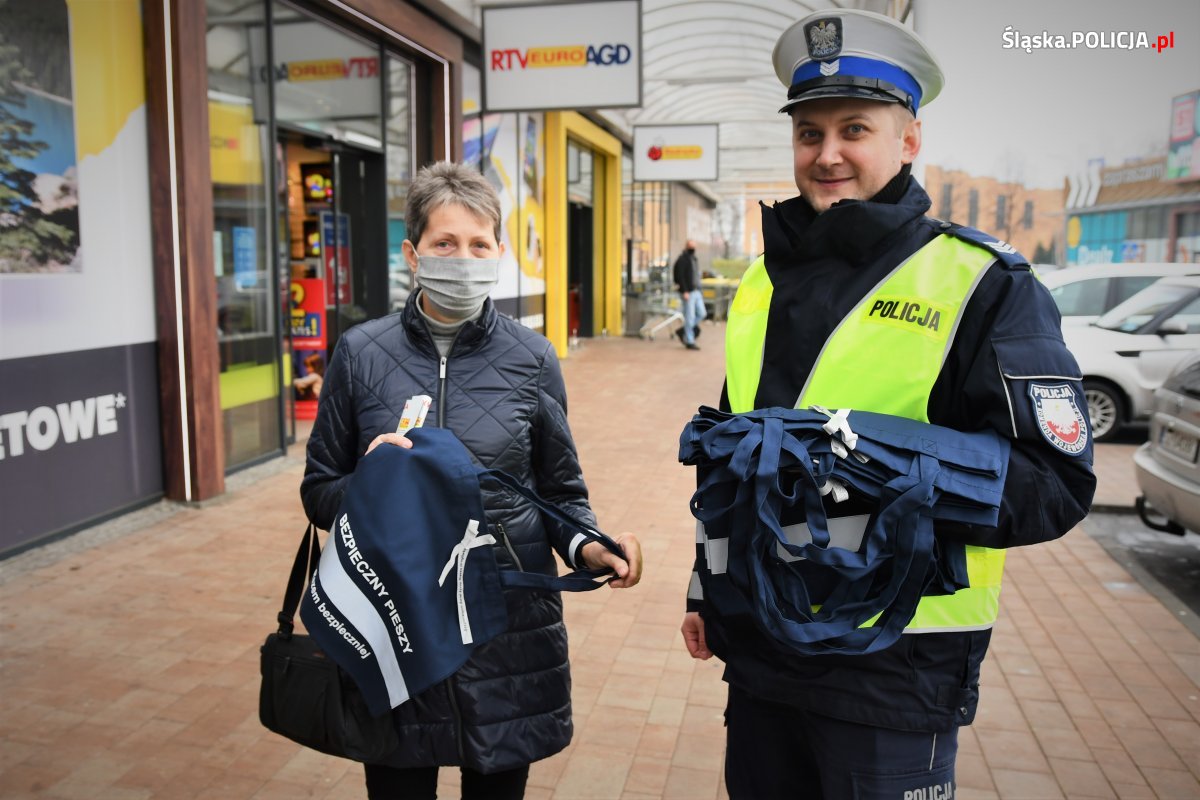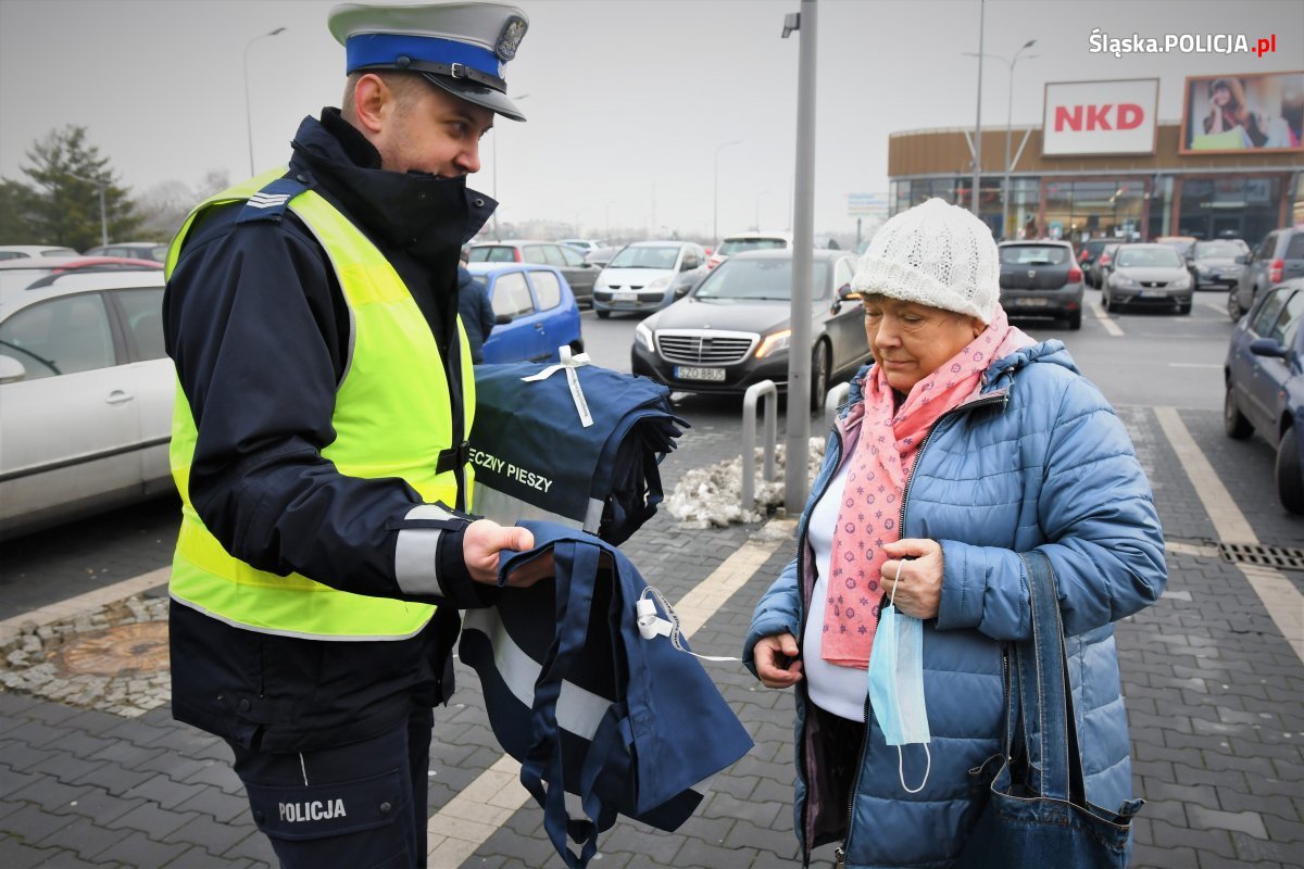 Poprawa bezpieczeństwa niechronionych uczestników ruchu drogowego i zmniejszenie liczby zdarzeń drogowych z ich udziałem – to cel przeprowadzonej w czwartek w Żorach akcji profilaktycznej. Policjanci Wydziału Ruchu Drogowego katowickiej komendy wojewódzkiej,Komendy Miejskiej Policji w Żorach i uczniowie klasy mundurowej wręczali mieszkańcom elementy odblaskowe. Termin działań nieprzypadkowy, przed nami Święta Bożego Narodzenia, czas wzmożonego ruchu pieszych i pojazdów, zwłaszcza w rejonie sklepów i galerii handlowych.