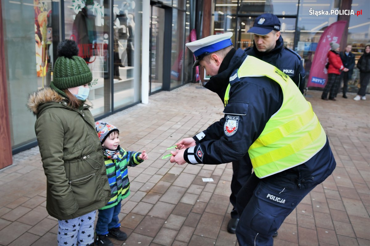 Wielkimi krokami zbliża się magiczny czas Świąt Bożego Narodzenia. Żeby nadchodzące święta były bezpieczne policjanci śląskiej drogówki i żorskiej komendy miejskiej, wspierani przez uczniów klasy mundurowej z Zespołu Szkół nr 3 w Żorach, zorganizowali profilaktyczne działania, w trakcie których wręczali elementy odblaskowe.