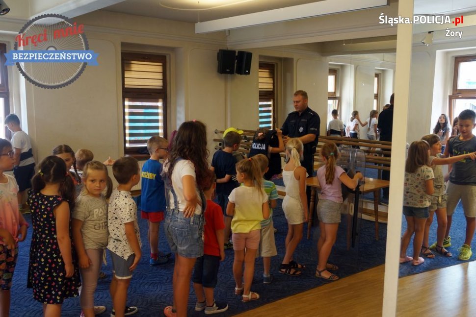 Dziś i wczoraj żorscy profilaktycy odwiedzili półkolonistów w żorskim MOK-u i tych spędzajacych czas w Westernowym Parku Rozrywki. Policjanci rozmawiali z nimi o bezpieczeństwie podczas wakacji, przestrzegali przed niebezpiecznymi sytuacjami i prezentowali służbowe wyposażenie.