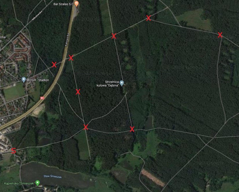 Zbiórka w sobotę, 23 maja o godzinie 9:30 w miejscu wejścia do lasu obok Amerykańskiego Parku Rozrywki Twinpigs. Na poniższej mapie zaznaczono miejsce zbiórki oraz punkty składowania zebranych odpadów.