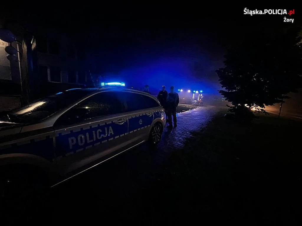 Chwilę po północy z wtorku na środę Dyżurny Komendy Miejskiej Policji w Żorach otrzymał wezwanie, iż pali się piętrowy budynek przy Alei Zjednoczonej Europy. Mundurowi przyjechali na miejsce jako pierwsi i zauważyli ogień i kłęby czarnego gryzącego dymu wydobywające się z budynku. W oknie zauważyli dwóch mężczyzn wzywających pomocy.