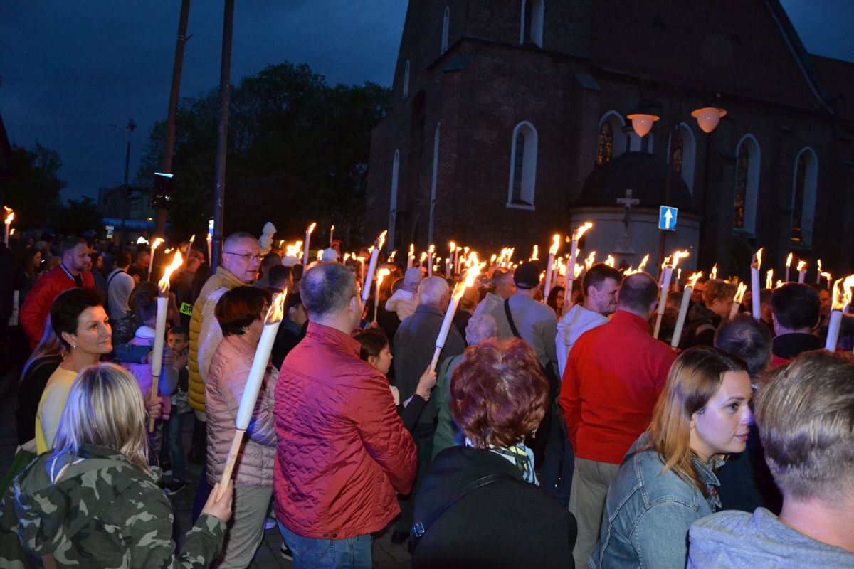 Po mszy świętej w kościele pw. Filipa i Jakuba tysiące żorzan wyruszyło w Procesję Ogniową ulicami miasta, a towarzyszył im blask pochodni.