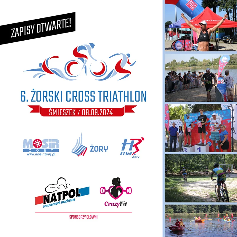 MOSiR w Żorach serdecznie zaprasza do udziału w kolejnych ekscytujących zawodach triathlonowych, które odbędą się 8 września 2024 r. – trwają zapisy na szóstą edycję Żorskiego Cross Triathlonu! Start zaplanowany jest na godzinę 10:30 przy Kąpielisku „Śmieszek” w Żorach.