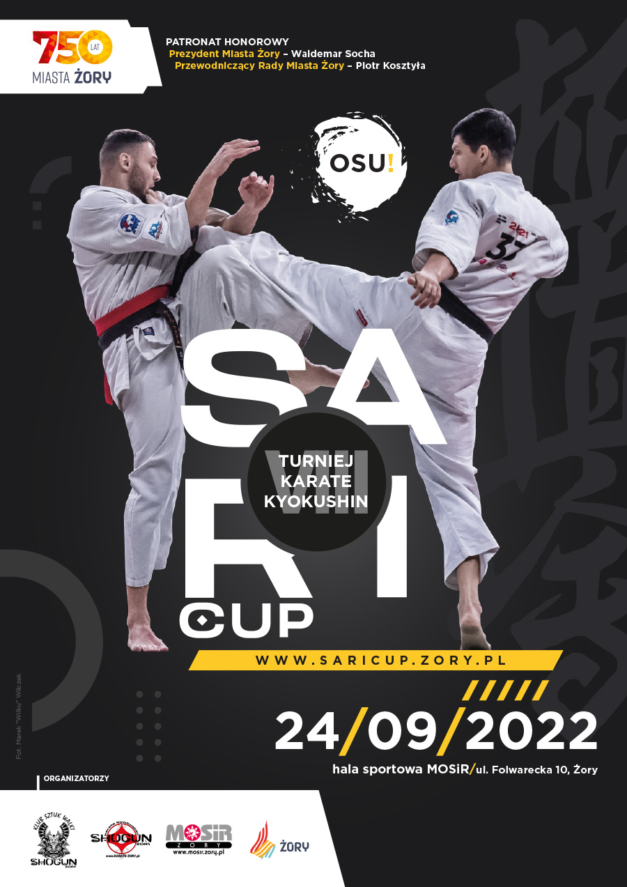 Klub Sztuk Walki SHOGUN ŻORY oraz Klub Karate Kyokushin SHOGUN ŻORY zapraszają na VIII edycje Turnieju Karate Kyokushin „SARI CUP”, który odbędzie się w sobotę 24 września Hali MOSIR w Żorach przy ul. Folwareckiej 10.