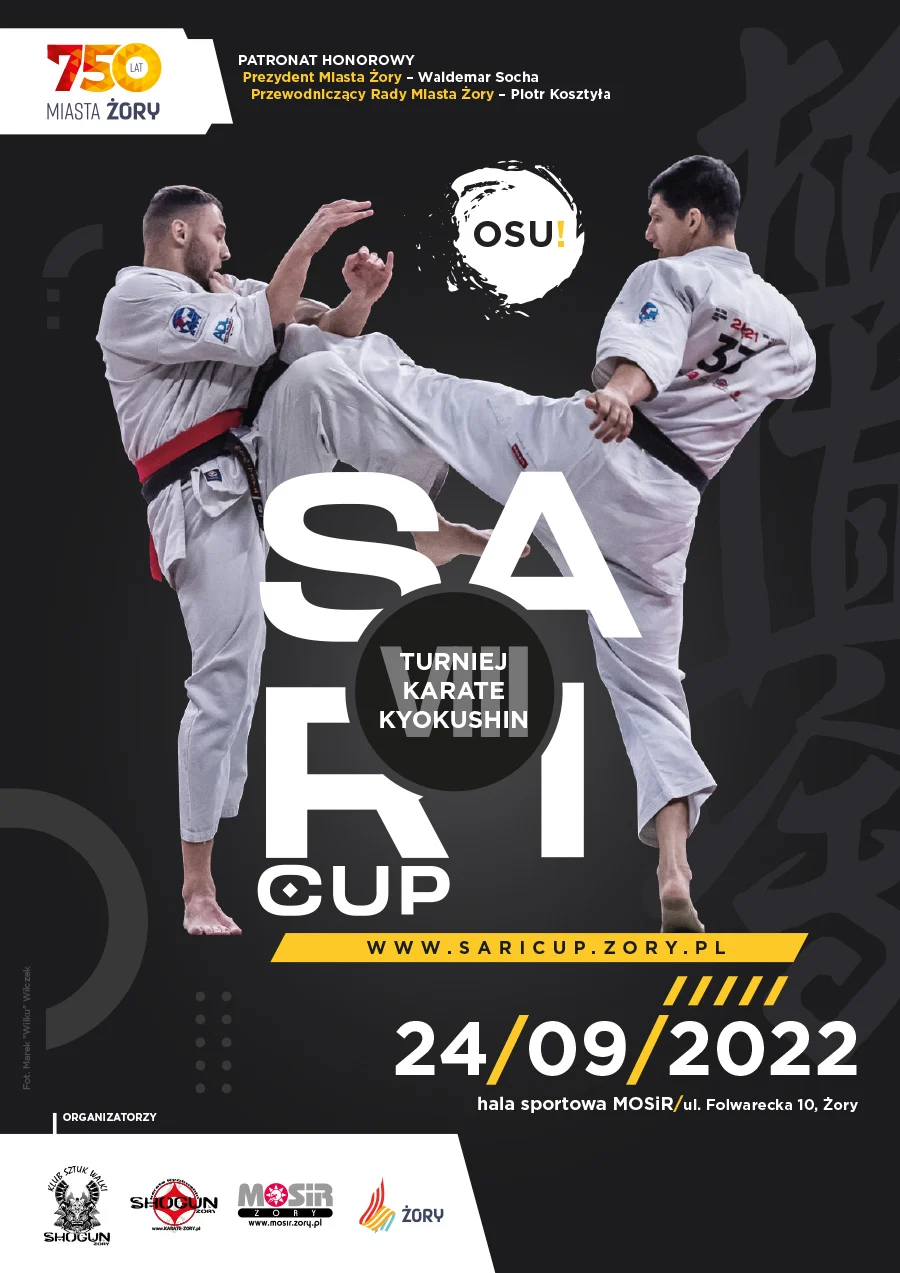 Klub Sztuk Walki SHOGUN ŻORY oraz Klub Karate Kyokushin SHOGUN ŻORY zapraszają na VIII edycje Turnieju Karate Kyokushin „SARI CUP”, który odbędzie się w sobotę 24 września Hali MOSIR w Żorach przy ul. Folwareckiej 10.