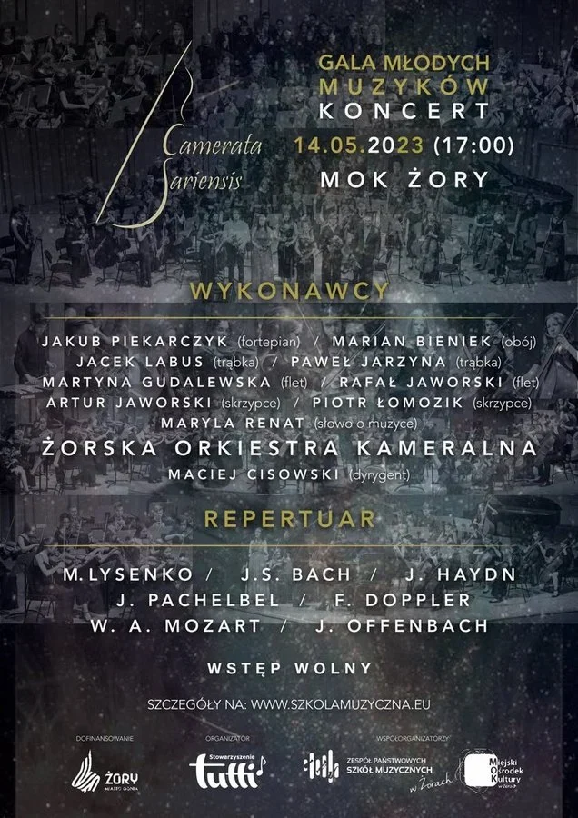 Już 14 maja br. w sali teatralnej Miejskiego Ośrodka Kultury w Żorach odbędzie się koncert symfoniczny pt. Gala Młodych Muzyków. W koncercie wezmą udział uczniowie, absolwenci szkoły muzycznej oraz Żorska Orkiestra Kameralna „Camerata Sariensis” pod dyr. Macieja Cisowskiego.