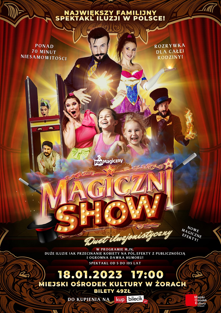 Magiczni SHOW to ponad 70-minutowy rollercoaster emocji, magii i śmiechu dla całej rodziny! Wydarzenie odbędzie się 18 stycznia o godzinie 17:00 w Miejskim Ośrodku Kultury w Żorach.