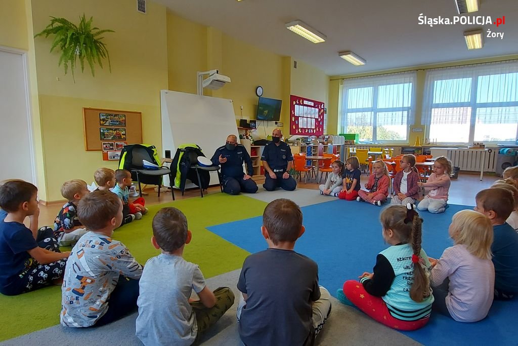 Policjanci z żorskiej drogówki na zaproszenie dyrektorów i wychowawców odwiedzają miejscowe przedszkola i szkoły. Spotkania o tematyce bezpieczeństwa w ruchu drogowym odbywają się w ramach corocznej akcji “Bezpieczna droga do szkoły“.