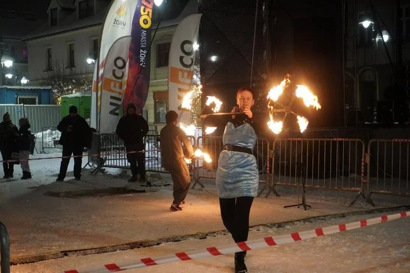 Po części oficjalnej, na wszystkich czekał darmowy poczęstunek – barszcz, krokiety z kapustą i grzybami oraz tradycyjna śląska moczka, przygotowane przez pracowników żorskiego Zakładu Aktywności Zawodowej „Wspólna Pasja” O doskonałe humory i świetną zabawę zadbał zespół Nivel, prezentując autorski repertuar oraz świąteczne utwory. Na scenie pojawili się również soliści i zespoły wokalne z Miejskiego Ośrodka Kultury. Tego dnia swój pokaz fireshow w tematyce świąteczno-zimowej przedstawiła raz jeszcze Isafira.