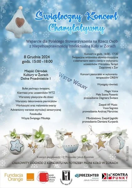 Przeżyj magiczny wieczór pełen muzyki, dobrej energii i wspólnego działania na rzecz potrzebujących. Niezwykły koncert charytatywny odbędzie się w najbliższą niedzielę, 8 grudnia o godz. 15:00 w Miejskim Ośrodku Kultury w Żorach.