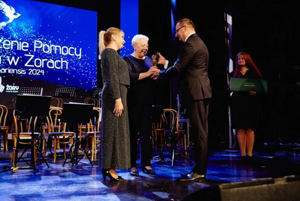 Druga ze statuetek trafiła do Stowarzyszenia Pomocy Dzieciom w Żorach! Rozpoczęło ono swoją dobroczynną działalność już w 1998 roku z inicjatywy pierwszego prezesa, śp. Jana Sochy. Początkowo pomoc ta kierowana była do potrzebujących dzieci i rodzin wUkrainie. W kolejnych latach stowarzyszenie zaczęło działać także na terenie naszego miasta, niosąc pomoc potrzebującym dzieciom. Pod kierownictwem kolejno Jana Sochy, Ludwika Wróbla, Augustyny Kapy oraz Katarzyny Tyrtanii organizacja ta już od ponad 25 lat oferuje wsparcie dzieciom z ubogich rodzin, dzieciom z niepełnosprawnością, osobom chorym oraz rodzinom dysfunkcyjnym. Stowarzyszenie corocznie obejmuje swą pomocą około tysiąca dzieci, m.in. dofinansowując zajęcia wakacyjne, organizując spotkania okolicznościowe czy wycieczki oraz przygotowując dla dzieci paczki świąteczne i wyprawki szkolne. Ponadto rodziny w trudnych sytuacjach życiowych, takich jak choroba czy utrata pracy mogą liczyć ze strony stowarzyszenia na pomoc materialną, finansową, zakup leków, sprzętu rehabilitacyjnego czy aparatury medycznej. Członkowie stowarzyszenia prowadzą też warsztaty dla dzieci szkolnych, a także dla ich rodziców. Ich działalność symbolicznie zatoczyła krąg, gdy w związku z wojną w Ukrainie, Stowarzyszenie zorganizowało i objęło pomocą materialną i żywnościową uchodźców, którzy dotarli do naszego miasta oraz organizowało wysyłkę darów właśnie do Ukrainy. W imieniu stowarzyszenia nagrodę odebrały prezes Katarzyna Tyrtania oraz wiceprezes Sabina Chyła.