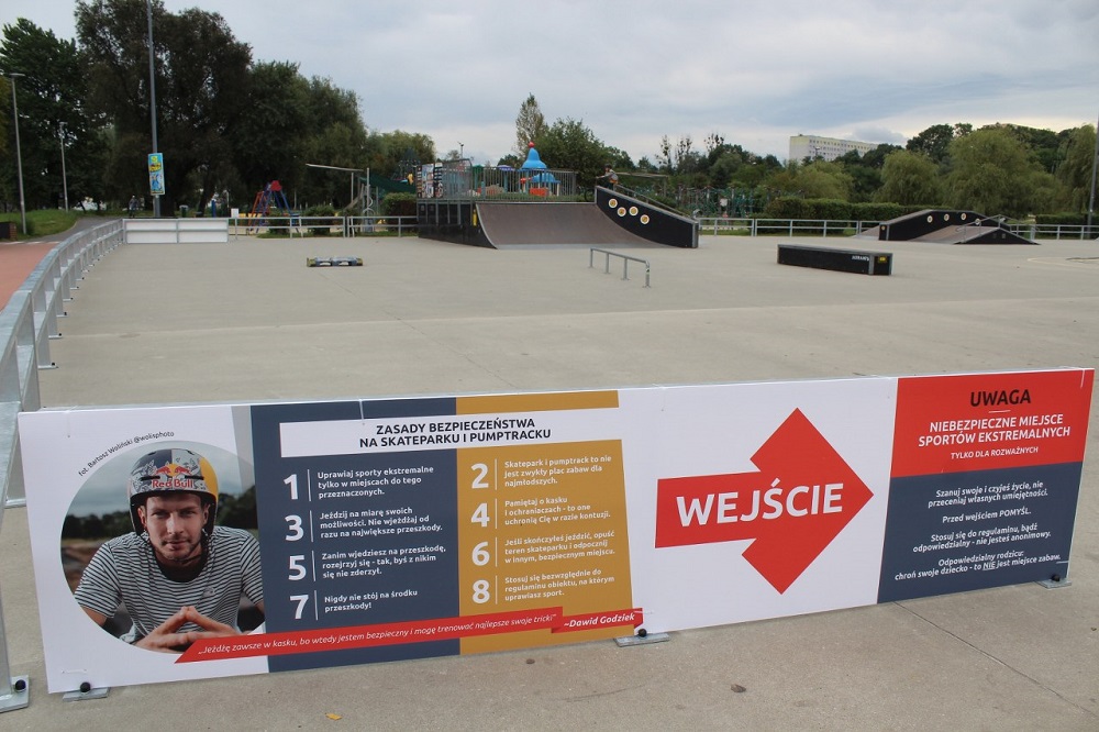 Jak już informowaliśmy wcześniej w okresie wakacji podjęto pierwsze działania zmierzające do poprawy bezpieczeństwa użytkowników naszego miejskiego Skate Parku. Na jego terenie pojawiły się już banery i naklejki przypominające o stosowaniu się do zaleceń i zakazów ujętych w regulaminie obiektu. Tworzą kampanii został mistrz sportów ekstremalnych Dawid Godziek, który wystąpił w filmie promującym bezpieczne korzystanie ze skateparków.