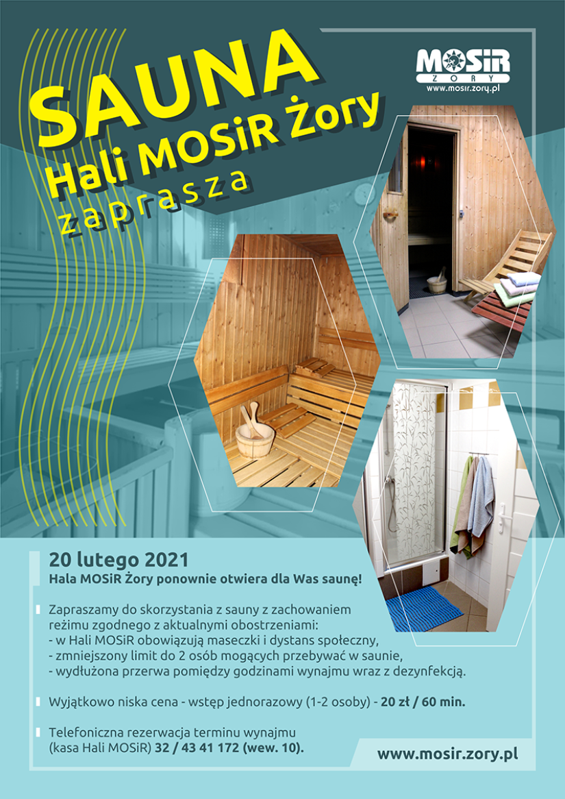 Miejski Ośrodek Sportu i Rekreacji w Żorach zaprasza po przerwie do skorzystania z sauny suchej typu fińskiego, zlokalizowanej w hali widowiskowo-sportowej przy ul. Folwareckiej 10 w Żorach.