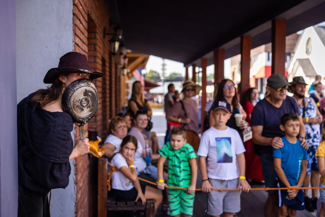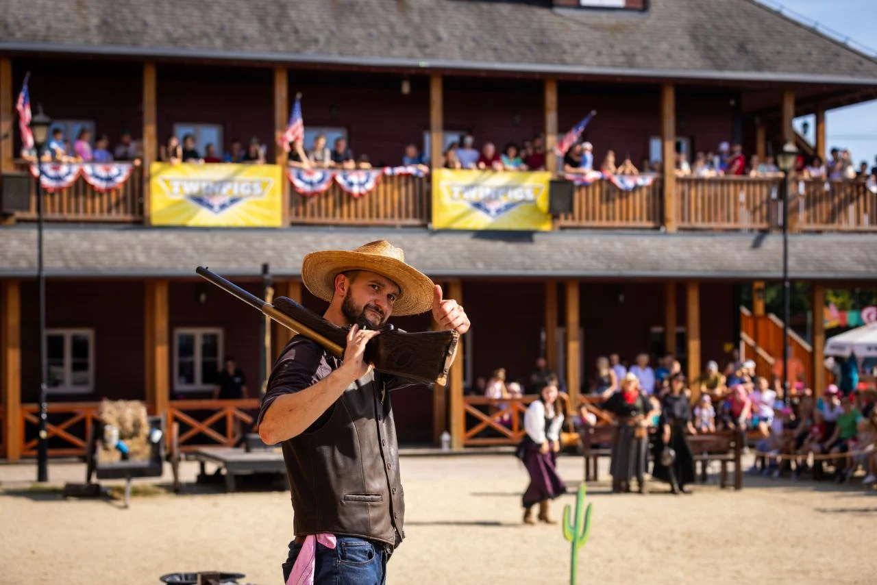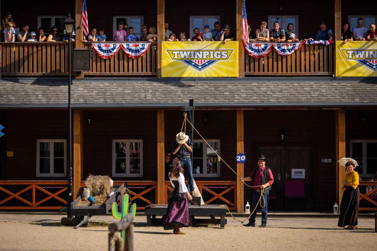 Dzień rozpoczął się o godzinie 10:00 od „Welcome in Twinpigs” – animacji na wejściu, co szczególnie ucieszyło najmłodszych uczestników. Jednak prawdziwą perłą były śląskie westerny Józefa Kłyka, w tym film „Emigrant”, który trwał 40 minut i stanowił wzruszającą opowieść o śląskich osadnikach. Po seansach filmowych mieliśmy okazję uczestniczyć w widowiskowym napadzie na bank oraz westernowym show, które przywołały ducha Dzikiego Zachodu.