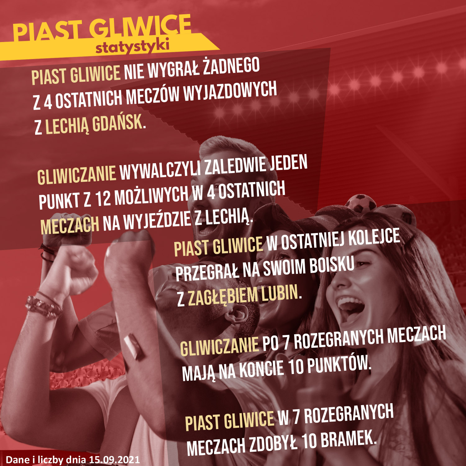 Tym razem piłkarze z Gliwic pojadą do Gdańska, czyli na obiekt, który w ostatnich latach wyraźnie im nie leżał. Piast nie wygrał żadnego z ostatnich 4 pojedynków wyjazdowych z Lechią Gdańsk, a dodatkowo w tym czasie zanotował aż 3 porażki. Pozytywem dla kibiców tego zespołu może być kwietniowe starcie, w którym w Gdańsku padł remis 2:2.