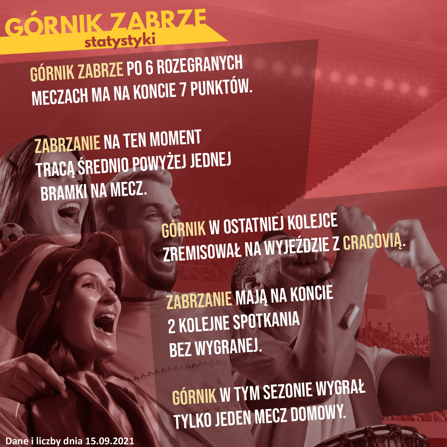 Górnik Zabrze w słabym stylu rozpoczął obecną kampanię, o czym świadczy pozycja w tabeli tego zespołu. Na ten moment podopieczni Jana Urbana plasują się na 15. miejscu i są lepsi jedynie od 3 drużyn. Do tej pory Górnicy wywalczyli 7 punktów w 6 rozegranych meczach, ale trzeba pamiętać, że mają jedną zaległość do nadrobienia. Do tej pory Górnik Zabrze zanotował aż 9 straconych bramek w obecnej kampanii i strzelił przy okazji 7 goli. Na ten moment ciężko ocenić postawę tego zespołu w meczach domowych, ponieważ Górnik Zabrze rozegrał do tej pory 3 rywalizacje na własnym obiekcie. W tym czasie podopieczni Jana Urbana wywalczyli zaledwie 3 punkty, jednak trzeba pamiętać, że mierzyli się między innymi z rozpędzonym Lechem Poznań, a także w derbach z Piastem Gliwice. Rywalizacja domowa z Wartą Poznań będzie prawdziwą weryfikacją tego zespołu.