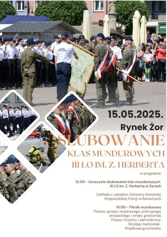 15 maja Rynek w Żorach znów zapełni się mundurami, dźwiękami orkiestry i emocjami związanymi z wyjątkowym ślubowaniem uczniów III LO im. Z. Herberta. Po raz drugi szkoła zorganizuje widowiskową uroczystość dla klas mundurowych, którą uświetni piknik ze sprzętem służb, występy mażoretek i interaktywny Escape Truck.