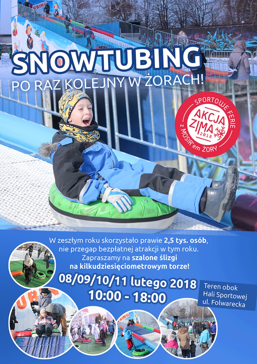 Ferie dobiegają końca, więc warto ostatnie wolne dni spożytkować na dobrą zabawę. Do tego zachęca MOSiR, który od czwartku, 8 lutego udostępni dla mieszkańców tor do snowtubingu. Tor to nic innego, jak sztuczny stok, po którym można zjeżdżać na specjalnych oponach.