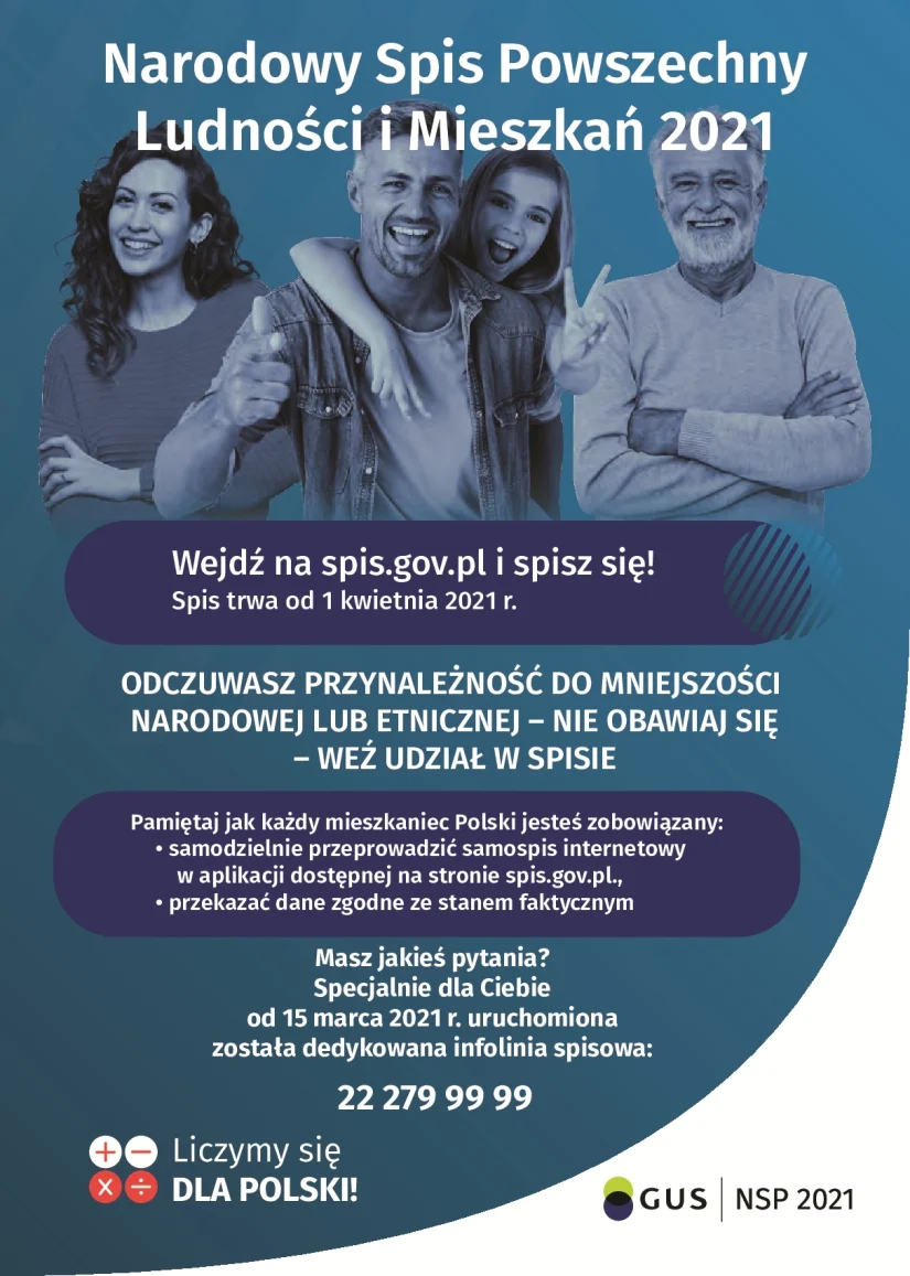 Czujesz się członkiem mniejszości i masz jakieś pytania? Specjalnie dla Ciebie od 15 marca 2021 r. uruchomiona zostanie dedykowana infolinia spisowa pod nr 22 279 99 99.