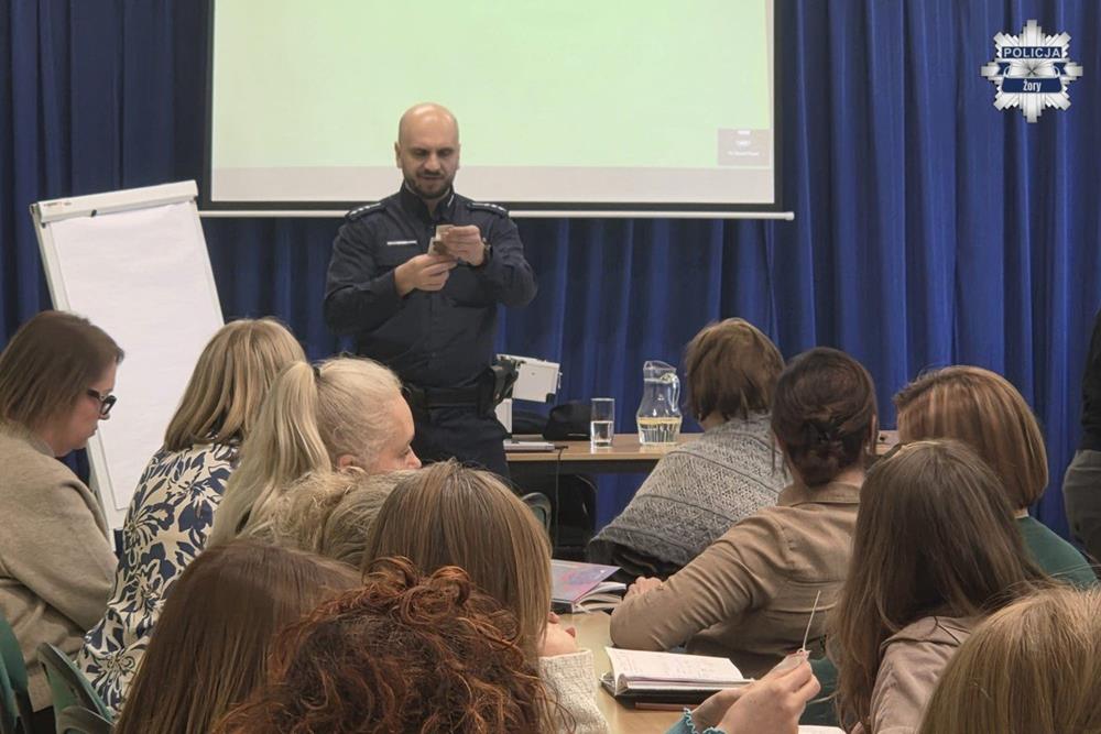 Spotkanie nauczycieli z przedstawicielem Policji w Żorach – temat uzależnień