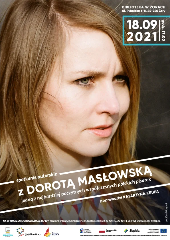 Zapraszamy na spotkanie z Dorotą Masłowską, jedną z najbardziej poczytnych współczesnych polskich pisarek dnia 18 września o godzinie 17:00 do Miejskiej Biblioteki Publicznej w Żorach im. Ottona Sterna. Spotkanie poprowadzi Katarzyna Krupa.