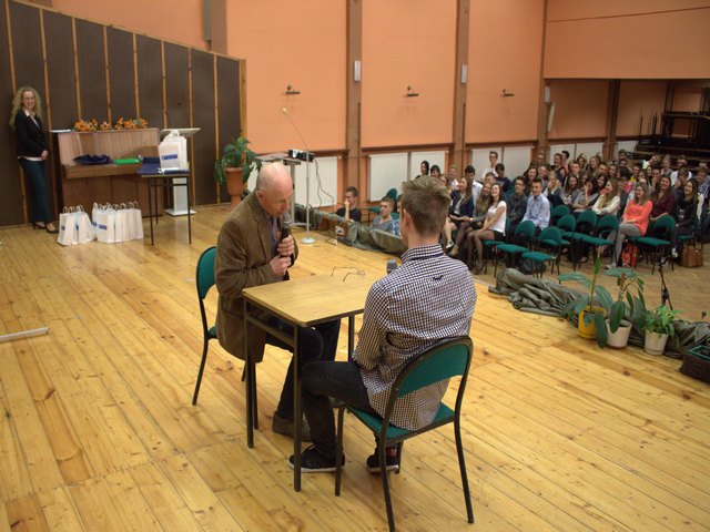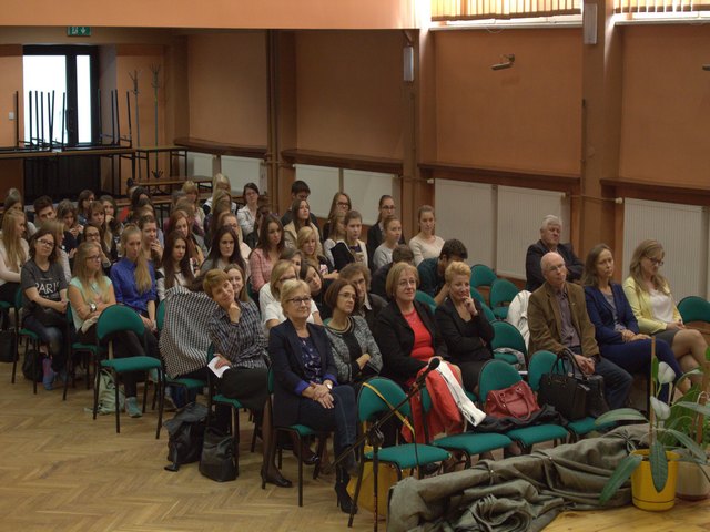 Następnie Pani Joanna Krupa, nauczyciel i koordynator przedsięwzięcia w Zespole Szkół Nr 2, podziękowała młodzieży za zaangażowanie i zapewniła, że taka aktywność na pewno zaprocentuje w przyszłości. Kolejną prelekcję wygłosiła Pani Grażyna Krzemińska, Prezes Zarządu firmy POL-DOM Sp. z o.o. Opowiedziała uczniom, że nie zawsze wymarzony lub wyuczony zawód może okazać się kluczowy w życiu zawodowym. Następnym punktem w programie były scenki rodzajowe, w których to stażyści stali się przedsiębiorcami, a przedsiębiorcy pracownikami. Dzięki tej zabawie, uczniowie mogli wczuć się w rolę właścicieli, kierowników firm oraz poczuć, jak wygląda decyzyjność w firmie.