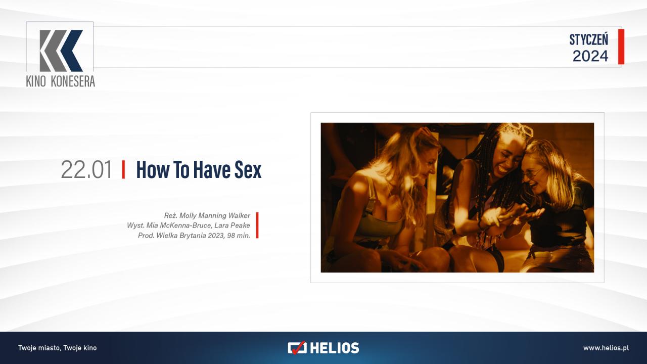 Helios zaprasza także na cykl Kino Konesera, w którym prezentuje mniej komercyjne, ale warte uwagi produkcje. Często są to dzieła uhonorowane nagrodami na festiwalach filmowych. W poniedziałek, 22 stycznia zostanie wyświetlony brytyjski dramat o dorastaniu, „How to Have Sex”. Trzy nastolatki jadą na wakacje, chcąc na chwilę oderwać się od stresu związanego z oczekiwaniem na wyniki egzaminu. Wczasy okazują się być nieustającą imprezą, w której postacie coraz bardziej się zatracają.