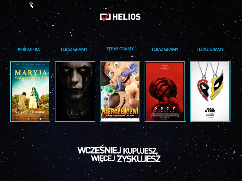 Premierowe seanse filmu dokumentalnego „Maryja Matka Ludzkości”, a także światowe hity: „Obcy: Romulus”, „Deadpool & Wolverine”, „It Ends with Us” oraz „Kruk” czekają na widzów w kinach Helios. Dopełnieniem oferty sieci będą także liczne animacje oraz uwielbiane pokazy specjalne, między innymi: Kultura Dostępna i Helios na Scenie.