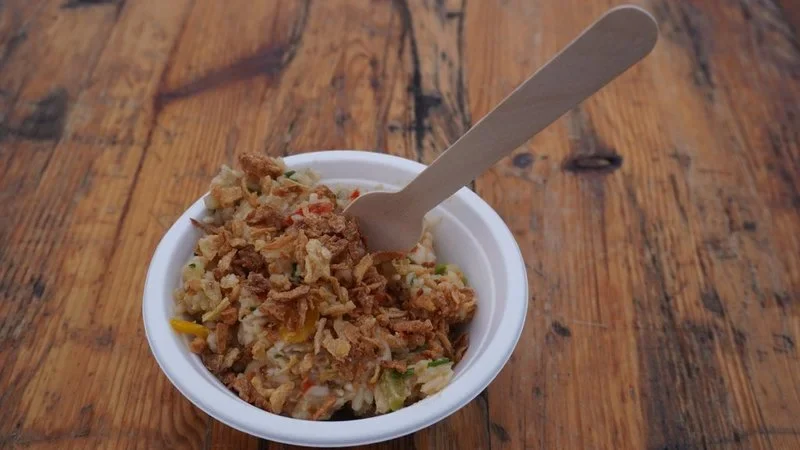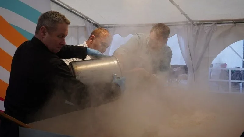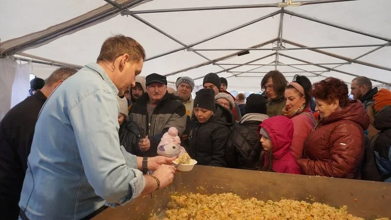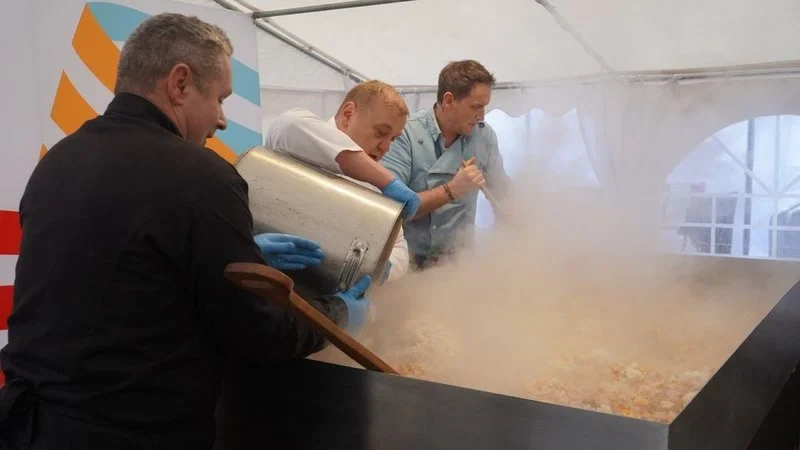 Można powiedzieć, że była to uczta z prawdziwego zdarzenia… świętowanie rozpoczęło się bowiem od gotowania na wielkiej patelni z wybitnym kucharzem Pascalem Brodnickim. Urodzony we francuskim Lille szef kuchni zaserwował przybyłym gościom niecodzienną potrawę – nasi goreng. To szybkie i smaczne daniewywodzi się z kuchni indonezyjskiej i malajskiej. Składa się na nie ryż smażony z dodatkiem jajek, kurczaka oraz posiekanych warzyw i charakterystycznych przypraw (Pascal postawił m.in na kecap manis). W sumie powstało 500 porcji tego niezwykłego dania, które rozeszło się w kilkanaście minut. Po degustacji, mieszkańcy oraz przybyli goście mogli wykonać sobie pamiątkowe zdjęcie z szefem kuchni, zamienić kilka słów czy otrzymać od niego autograf.