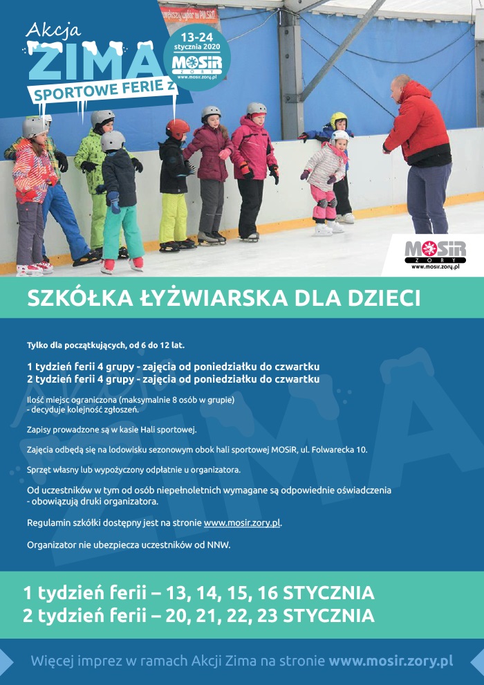 Miejski Ośrodek Sportu i Rekreacji w Żorach zaprasza małych i dużych miłośników zimowych szaleństwa do udziału w zajęciach szkółki łyżwiarskiej. Szczegóły poniżej: