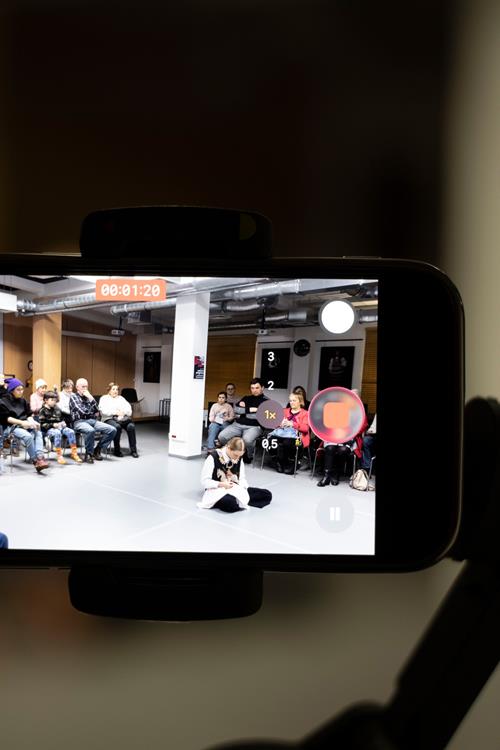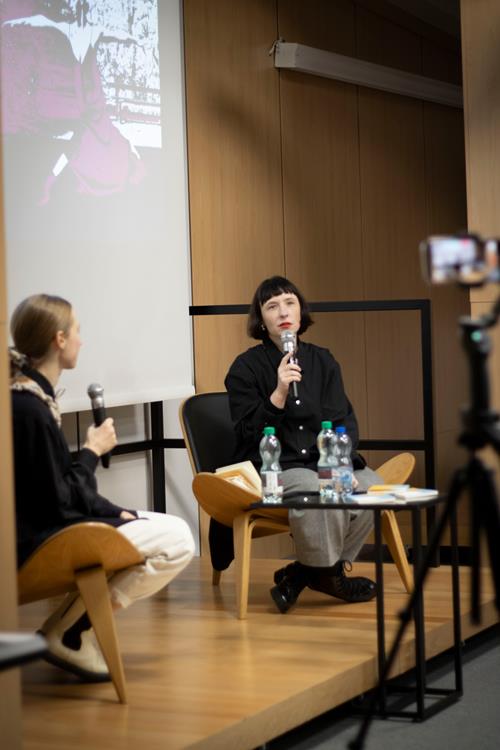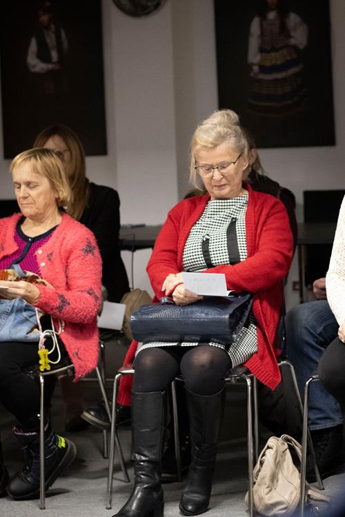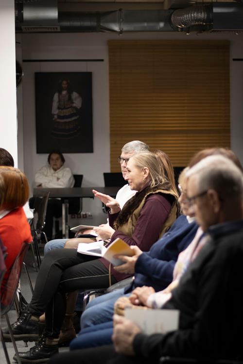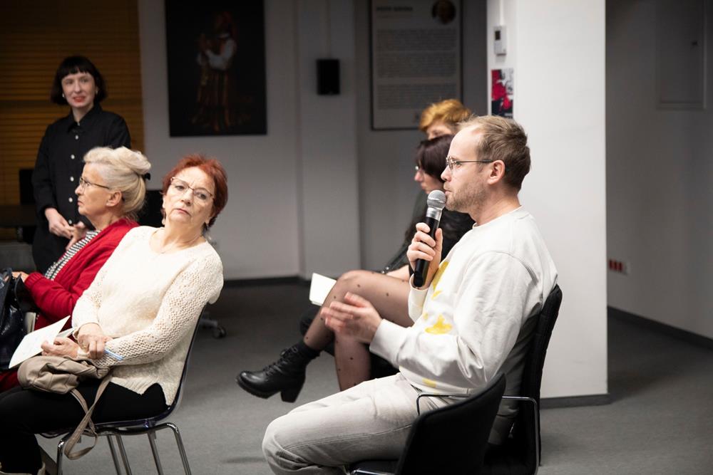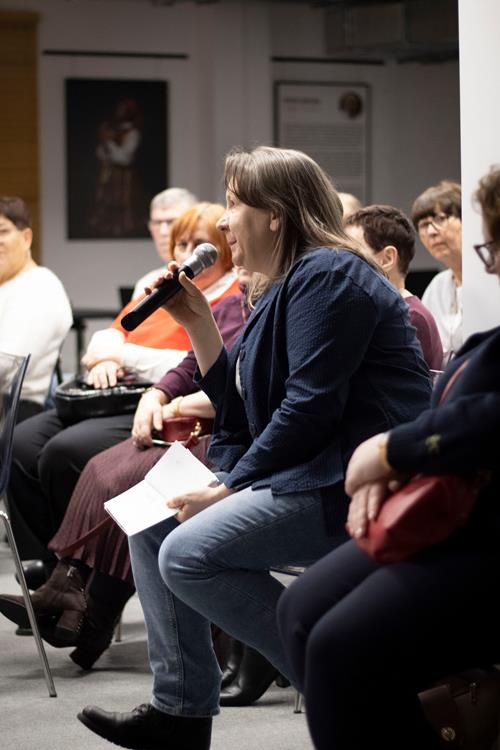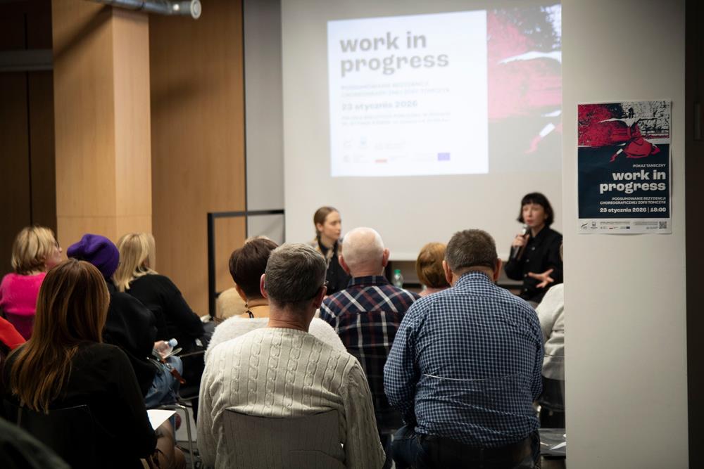 Trzecim elementem była rozmowa z artystką, prowadzona przez pomysłodawczynię projektu, Magdę Garlińską. Dyskusja szybko przerodziła się w otwarte spotkanie – publiczność aktywnie włączała się, dzieląc się interpretacjami, refleksjami i pytaniami. W efekcie finał rezydencji stał się wspólnym doświadczeniem procesu twórczego, a nie tylko pokazem „gotowego dzieła”.