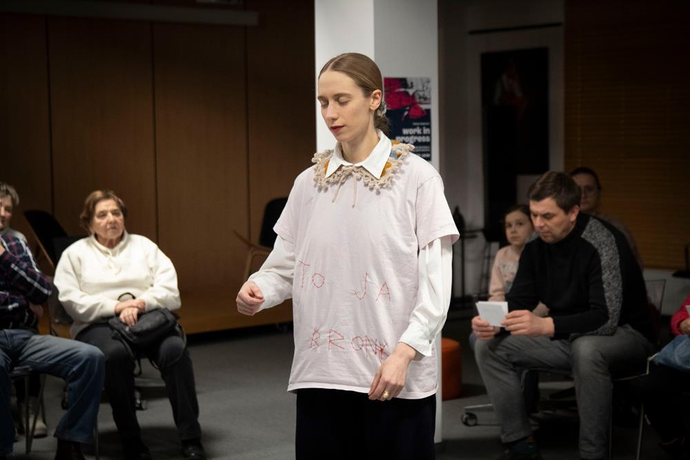 Pierwsza odsłona miała mocny, symboliczny gest. Artystka wyszywała na koszulce hasło „TO JA BRONKA”, a następnie założyła ją i wykonała taniec. To był cielesny gest przywołania pamięci i nadania głosu postaci, od której rozpoczęła się cała opowieść.