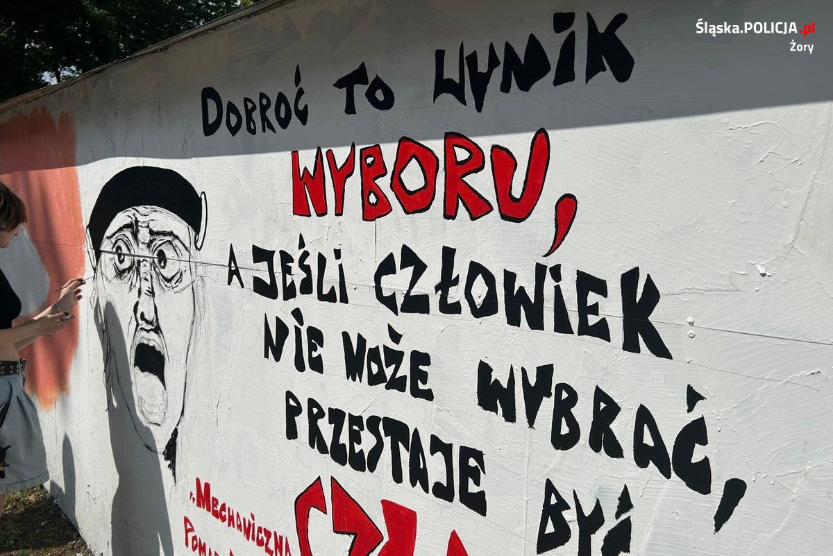 Załączony film przedstawia pracę uczniów podczas tworzenia galerii. W imieniu swoim i autorów serdecznie zapraszamy do odwiedzenia ulicznej galerii podczas codziennych spacerów po mieście – zachęca żorska Komenda Policji w Żorach.