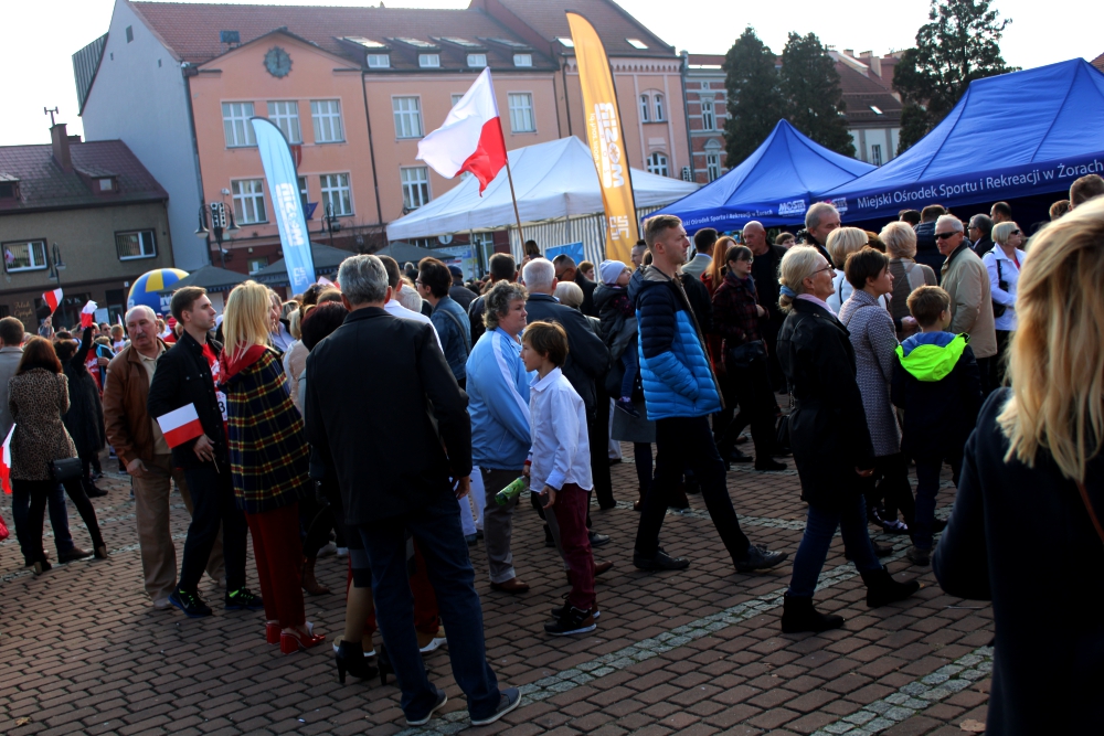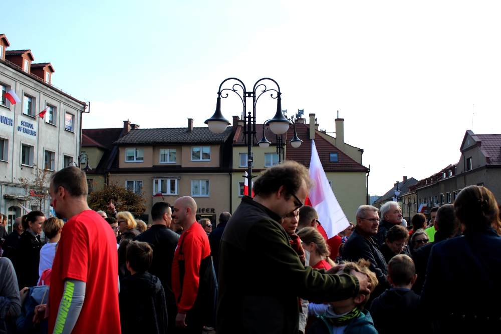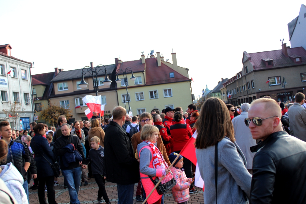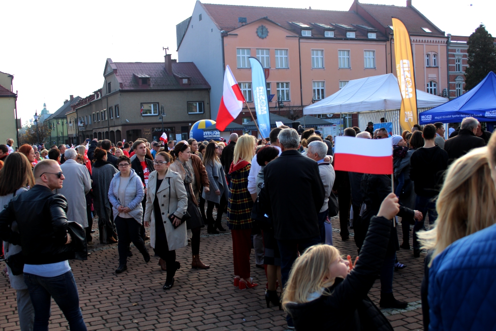 Żory włączyły się w ogólnopolską akcję pn. „Niepodległa do hymnu!”. W samo południe mieszkańcy tłumnie zebrani na rynku odśpiewali „Mazurek Dąbrowskiego”. Zobaczcie zdjęcia!