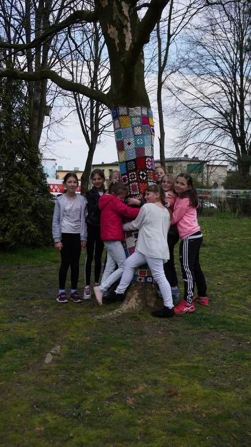 Szkoła Podstawowa nr 16 z Oddziałami Integracyjnymi, której leży na sercu ekologia, mająca pierwszą w Polsce farmę wertykalną, pragnęła stworzyć również przestrzeń przyjazną dzieciom i środowisku. Stąd pomysł na drzewa do przytulania, które zostały przyodziane w kolorowe sweterki. Do akcji przystąpiły również Seniorki Dziennego Domu”Senior+” w Żorach, grupa “Pikotki” z Rydułtów oraz uczniowie, rodzice i nauczyciele SP16. Przytulanie pozwala chłonąć pozytywne bodźce, jakie daje drzewo.