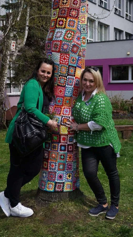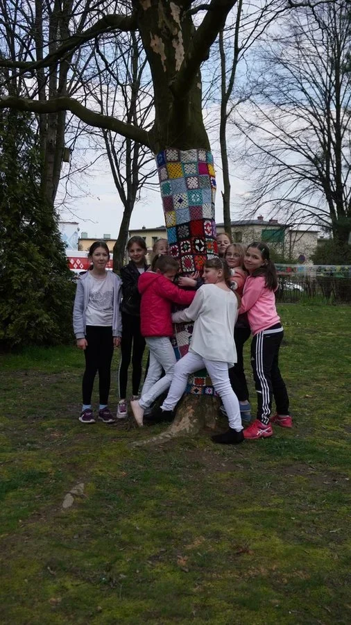 Szkoła Podstawowa nr 16 z Oddziałami Integracyjnymi, której leży na sercu ekologia, mająca pierwszą w Polsce farmę wertykalną, pragnęła stworzyć również przestrzeń przyjazną dzieciom i środowisku. Stąd pomysł na drzewa do przytulania, które zostały przyodziane w kolorowe sweterki. Do akcji przystąpiły również Seniorki Dziennego Domu”Senior+” w Żorach, grupa „Pikotki” z Rydułtów oraz uczniowie, rodzice i nauczyciele SP16. Przytulanie pozwala chłonąć pozytywne bodźce, jakie daje drzewo.