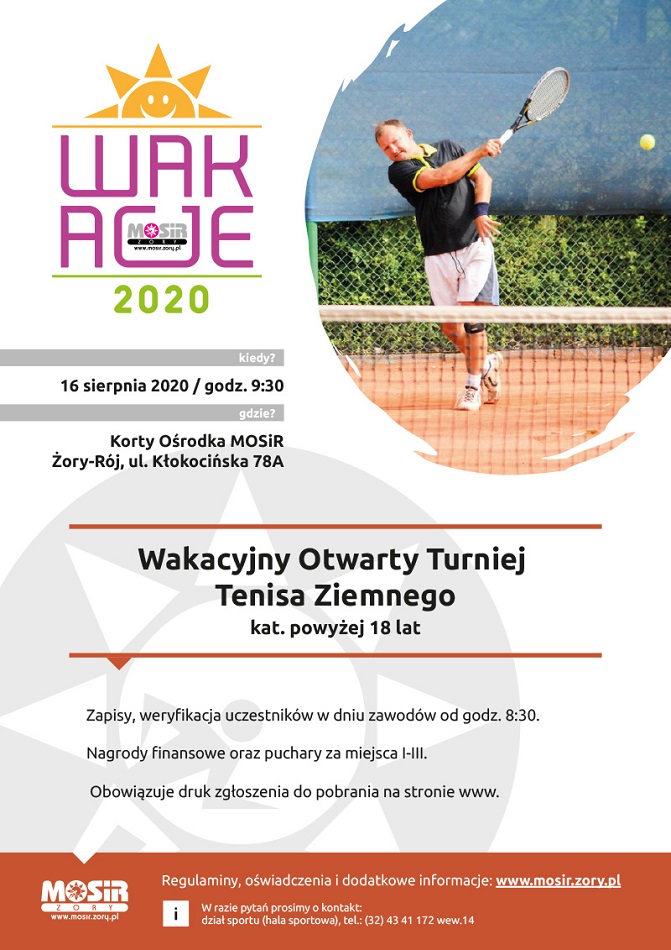 16 sierpnia 2020 roku w ramach akcji Wakacje odbędzie się Wakacyjny Otwarty Turniej Tenisa Ziemnego.