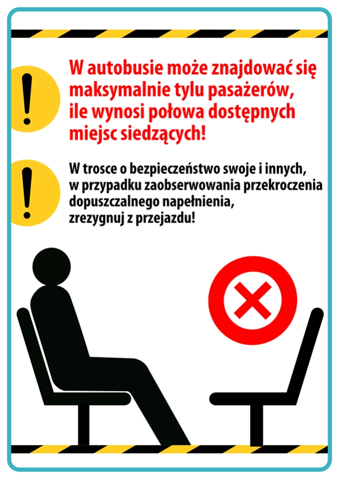 - Na drzwiach autobusów pojawią się komunikaty o maksymalnej dopuszczalnejliczbie osób.