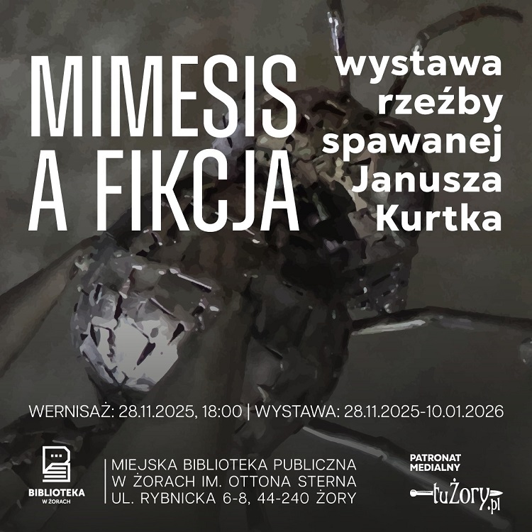Miejska Biblioteka Publiczna w Żorach zaprasza na wernisaż wystawy rzeźby spawanej autorstwa Janusza Kurtka, który odbędzie się 28 listopada o godzinie 18:00 w Galerii Na Piętrze. Wystawa, zatytułowana „Mimesis a Fikcja”, będzie dostępna dla zwiedzających do 10 stycznia 2026 roku. Wstęp na wystawę jest wolny.