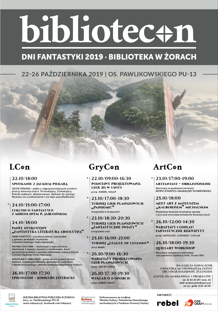 W dniach 22 – 26 października w Bibliotece Publicznej w Żorach odbywać się będzie projekt „BiblioteCon – dni fantastyki 2019”.