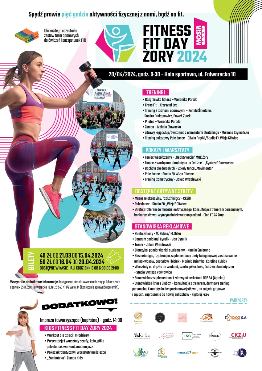 Fitness Fit Day Żory 2024 to impreza dla wszystkich pragnących zgubić kalorie, popracować nad sylwetką, poznać nowe formy ćwiczeń, miło i aktywnie spędzić swój czas.