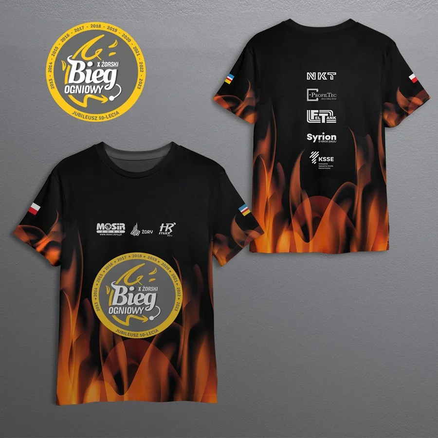 Biegacze staną na linii startu, umiejscowionej przy ul. ks. Klimka w czwartek, 11 maja o godzinie 22:30. W świetle rozpalonych pochodni uczestnicy imprezy przemierzą uliczkami miasta trasę o długości 5 km. W pakiecie startowym otrzymają jubileuszową koszulkę, którą prezentujemy poniżej, a na mecie także piękny medal.