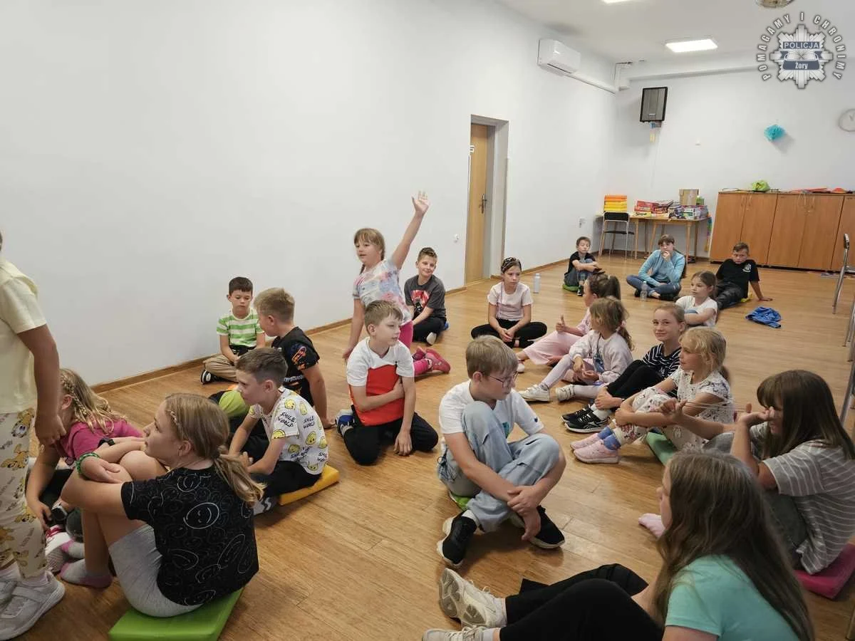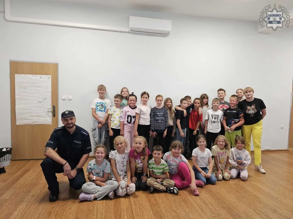 Dzieci z półkolonii organizowanych w świetlicy środowiskowej „Smok” w Żorach miały okazję spotkać się z aspirantem Witoldem Lisiakiem z żorskiej komendy Policji. Wizyta miała na celu przypomnienie najmłodszym podstawowych zasad bezpieczeństwa, szczególnie w kontekście letnich zagrożeń. Spotkanie odbyło się w ramach ogólnopolskich kampanii „Bezpieczne wakacje” oraz „Kręci mnie bezpieczeństwo w lecie”.