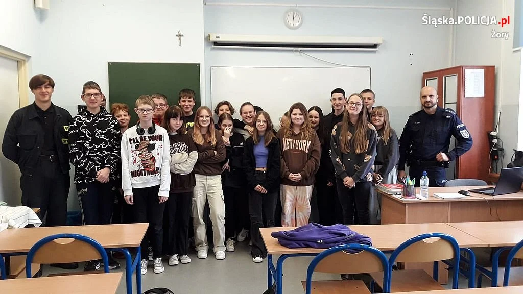 W czwartek z młodzieżą ze Szkoły Podstawowej nr 17 im. Stanisława Ligonia w Żorach spotkał się policjant na co dzień zajmujący się prewencją i profilaktyką młodzieży. Problem uzależnień wśród dzieci i młodzieży jest powszechnie znany w obecnych czasach. Uzależnienia są jednym z największych zagrożeń współczesności. Przyczyn upatrywać się należy między innymi w gwałtownych przemianach, jakie zaszły w ostatnich latach. Zmiany kulturowe doprowadziły do erozji systemu wartości etycznych i norm moralnych, a to pociągnęło za sobą lawinowy wzrost osób sięgających po środki psychoaktywne. Obserwujemy gwałtowny wzrost liczby osób uzależnionych, a dotyka to głównie młodzieży. Młodzi ludzie, szczególnie u progu dorastania podejmują wiele różnorodnych, niekiedy zupełnie nowych dla nich zachowań. Zdarza się, że niestety zaczynają eksperymentować z używkami.