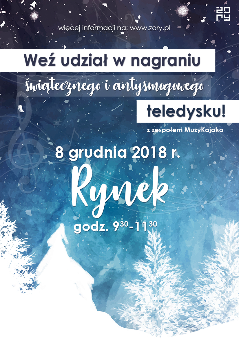 „Pastorałki znad rzeki Rudy” to tytuł nowej, świątecznej płyty żorskiego zespołu MuzyKajaka, która powstaje przy wsparciu Gminy Miejskiej Żory. Na płycie znalazła się pastorałka ze szczególnym przesłaniem – „Anty-smogowa bossanova” ma zachęcać do wspólnych starań o czyste powietrze. Każdy chętny może pomóc w szerzeniu tej idei, biorąc udział w nagraniu teledysku! Wystarczy w najbliższą sobotę przyjść na żorski rynek.