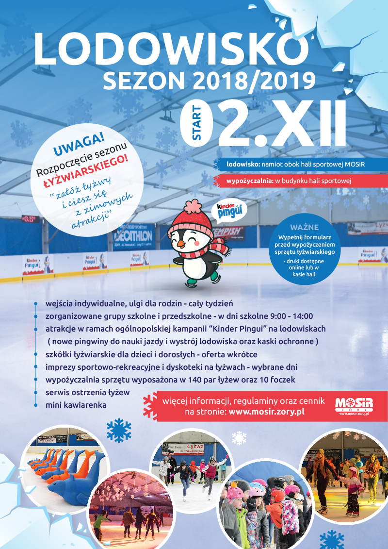 Nowe pingwiny do nauki jazdy, kaski ochronne dla dzieci oraz zmieniony wystrój – to zmiany wprowadzone w tym roku na lodowisku przy ul. Folwareckiej w ramach ogólnopolskiej kampanii „Kinder Pingui”. Wszyscy odwiedzający lodowisko będą mogli także skorzystać ze szkółki łyżwiarskiej, dyskotek na łyżwach i mini kawiarenki, w której można usiąść przy stoliku i napić się gorącej kawy czy herbaty z automatu.