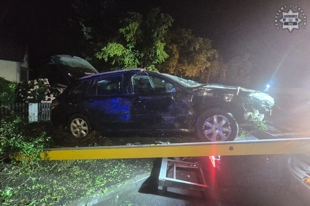 W nocy z 3 na 4 lipca, tuż przed godziną 1:00, na skrzyżowaniu ulic Klonowej i Mikołowskiej w Żorach doszło do poważnie wyglądającego wypadku drogowego. 18-letni obywatel Ukrainy, kierując renault laguną, stracił panowanie nad autem, uderzył w drzewo, a następnie dachował. Na miejsce natychmiast skierowano patrol policji.
