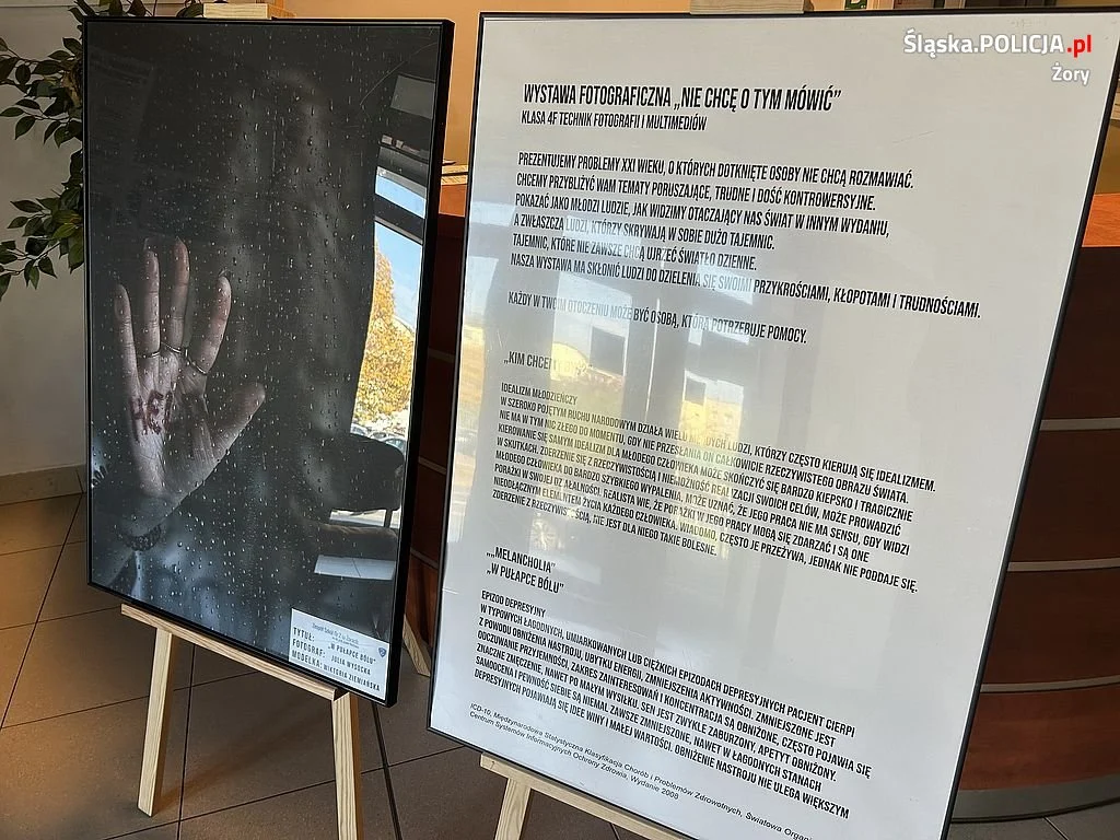 Wystawa fotograficzna przygotowana została przez uczniów klasy 4 kierunku technik fotografii i multimediów Zespołu Szkół nr 2 w Żorach im. Ks. prof. Józefa Tischnera. Wernisaż prac odbył się w ramach Światowego Dnia Zdrowia Psychicznego, który co roku przypada 10 października. Poszczególne jej części będzie można oglądać również przed punktem informacyjnym znajdującym się w poczekalni Komendy Miejskiej Policji w Żorach.